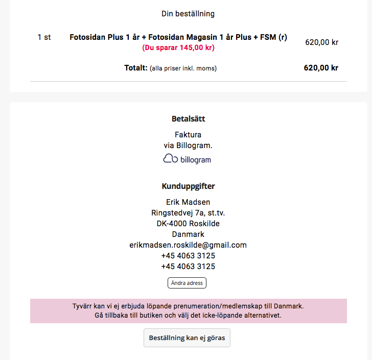 Jag måste lägga upp ett nytt inlägg idag. Jag hade problem med att förnya mitt medlemskap och samtidigt beställa ett abonnemang på Fotosidan Magasin. När jag ... läs mer..